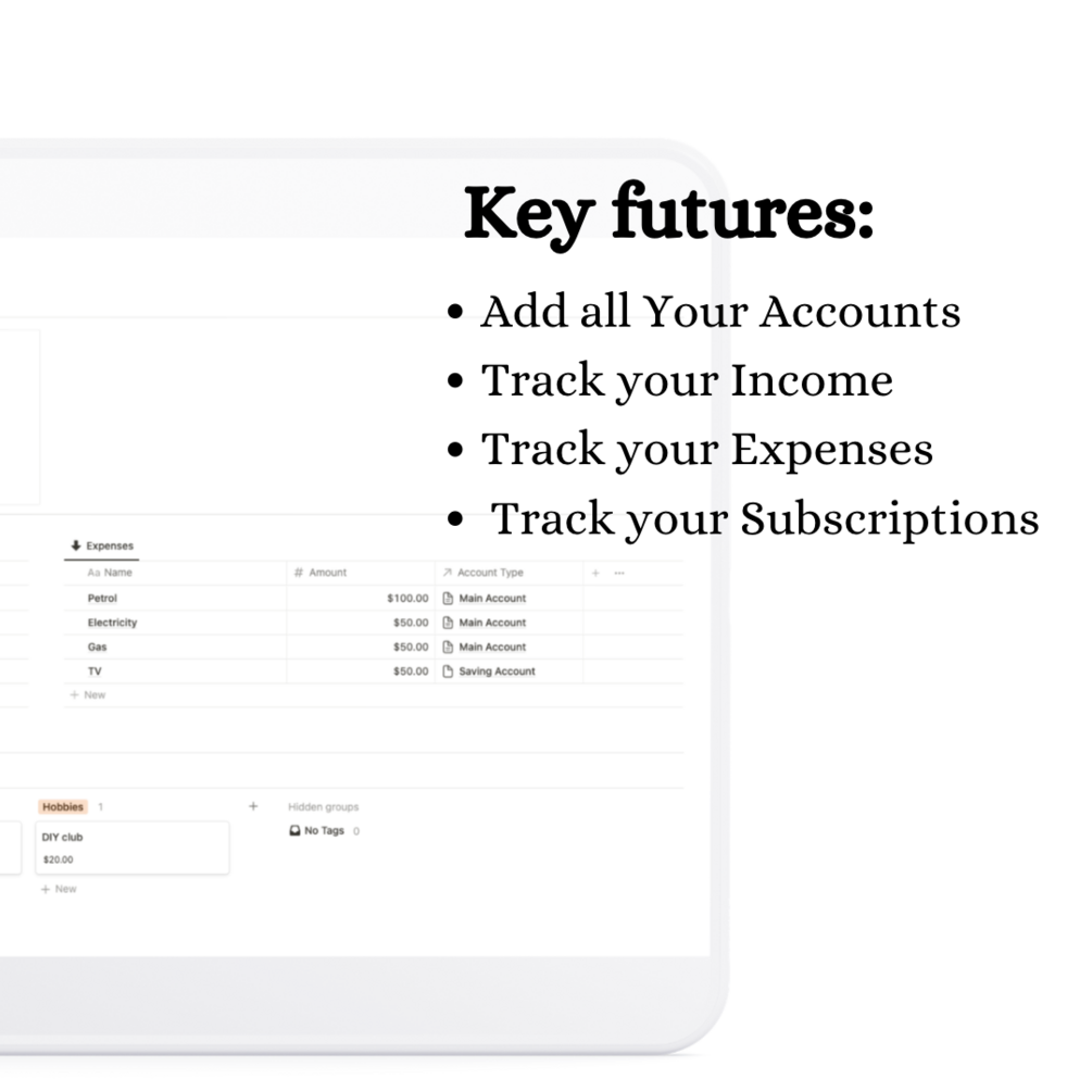 - Track your income, expenses and subscriptions